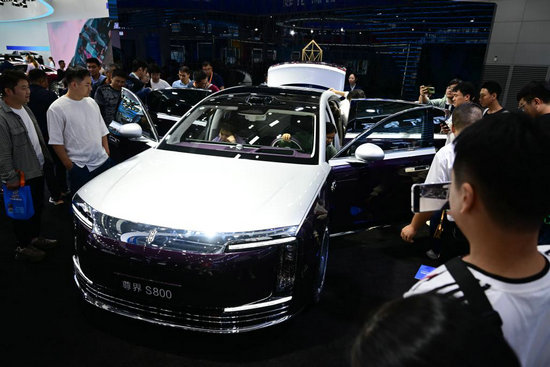 9月20日,觀眾在2025世界制造業大會上參觀體驗一款新能源汽車。新華社記者 周牧 攝