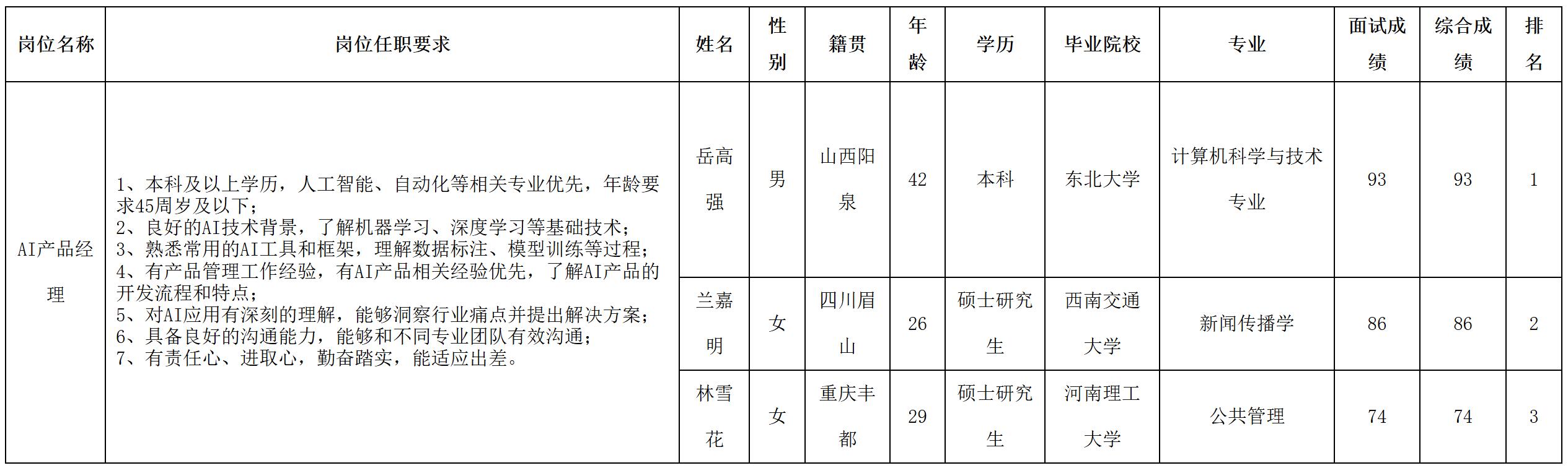 根據四川長虹虹微科技有限公司發布的招聘公告及招聘相關規定,經面試等程序,現將面試成績予以公示。