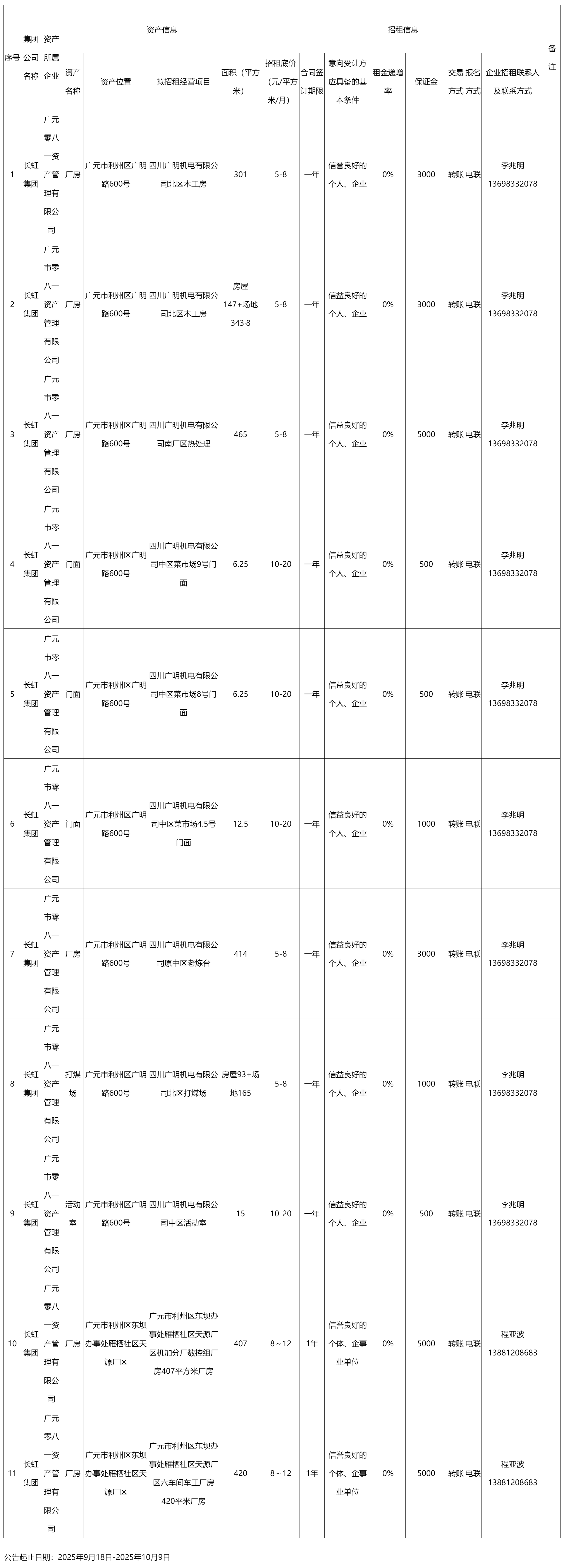 廣元零八一資產(chǎn)管理有限公司資產(chǎn)出租公告