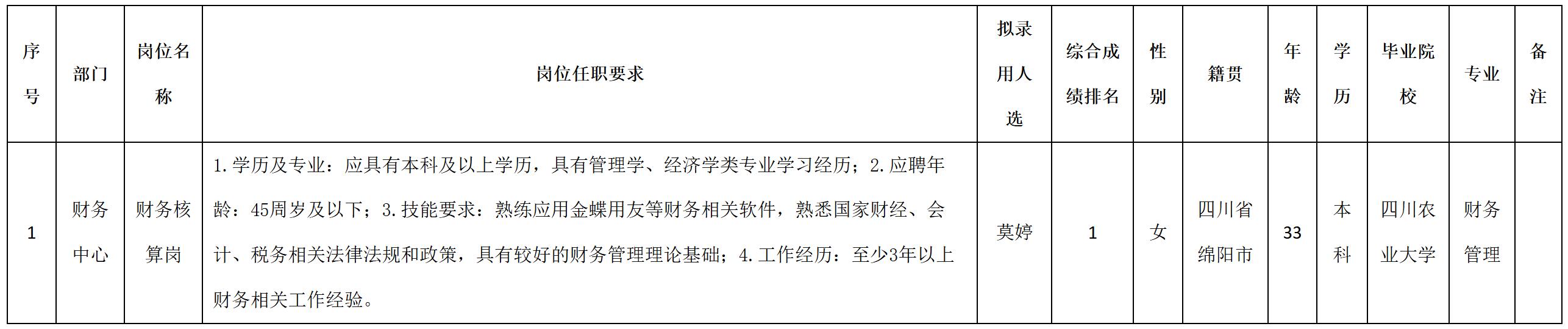 根據四川九州光電子技術有限公司發布的招聘公告及招聘相關規定,經筆試、面試、考察、體檢等程序,擬錄用莫婷同志到四川九州光電子技術有限公司工作,現予以公示,具體情況如下: