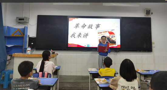 革命故事分享,紅色基因入童心:班級內開展“革命故事我來講”活動,學生代表通過朗誦、情景劇片段演繹等形式,再現“小兵張嘎”“新安旅行團”等貼近兒童視角的革命故事,用生動的語言和動作,讓同伴感受革命先輩的勇敢與智慧,讓紅色精神在互動中浸潤心靈。
