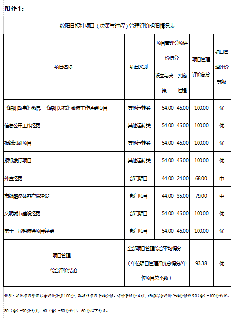 附件1:綿陽日報社項目(決策與過程)管理評價明細情況表