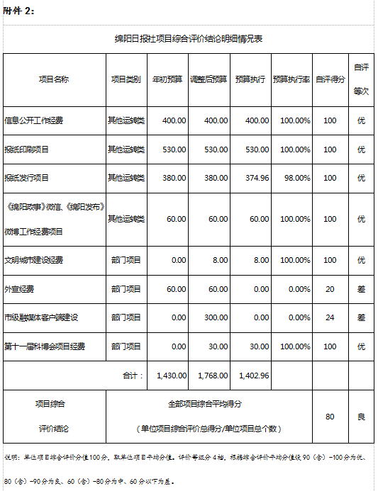 附件2:綿陽日報社項目綜合評價結論明細情況表