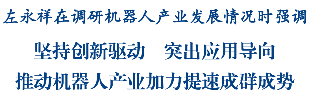 調研過程中,左永祥強調,機器人產業具有極大的發展潛力、市場空間,是我市正在大力培育的重點特色產業新賽道。全市各級各有關部門要進一步深化認識、把握機遇,圍繞產業生態和全產業鏈持續用力、久久為功,瞄準未來超前布局產業鏈核心環節,推動機器人產業加快發展壯大。要著力促進產學研深度融合,支持企業、高校等各類創新主體開展聯合攻關,聚焦人形機器人“大腦”“小腦”“肢體”“感知”等環節,加快突破一批關鍵技術,以科技創新引領產業創新。要豐富拓展應用場景,加強供需對接和場景開發,支撐和吸引更多科技成果落地轉化,推進人形機器人在先進制造、物流、醫療、家政、特種環境等領域的應用,更好滿足人民群眾對美好生活的向往。要優化產業發展生態,加強人才、金融等要素保障,持續完善培育機制,加快培育更多機器人領域的科技領軍企業、鏈主企業、制造業單項冠軍企業和專精特新企業,不斷做強鏈條、做大規模,努力打造具有全國影響力的機器人產業發展高地。