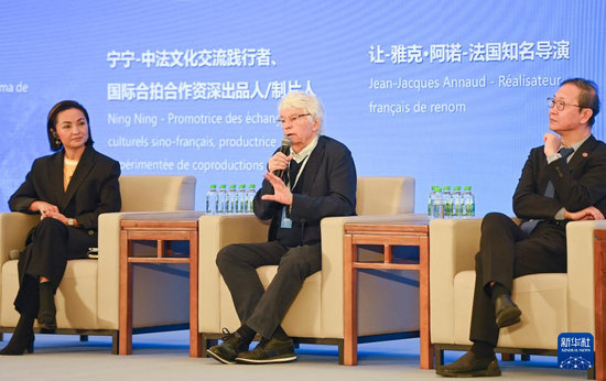 9月24日,法國導演讓-雅克·阿諾(中)在“中法影像對話沙龍”交流。