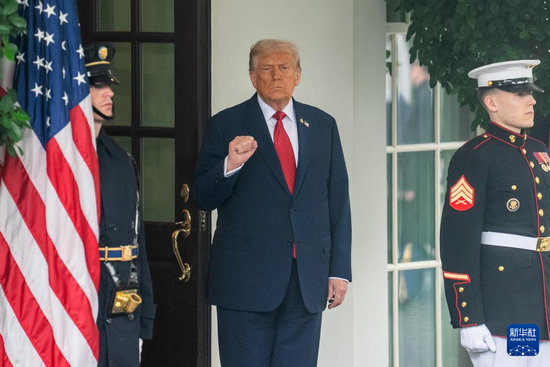 9月25日,在美國首都華盛頓白宮,美國總統特朗普迎候土耳其總統埃爾多安(未在畫面中)。新華社記者 胡友松 攝