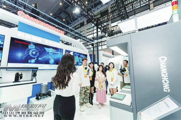 觀眾在長虹展區圍觀“科技創新 長虹智造”展品