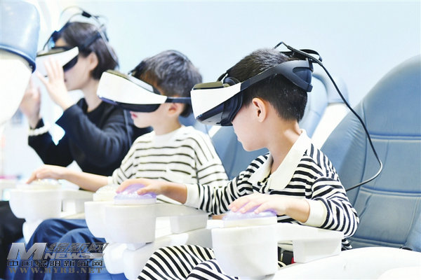“南天門計劃”展館體驗更讓“小小探館員”興奮不已,從空天母艦到星際戰機,從地效飛行到星際救援,靜態展示與沉浸式互動全覆蓋。孩子們頭戴設備沉浸探索宇宙,家長們圍站四周,目光緊隨著孩子的表情變化,共赴星際奇旅。