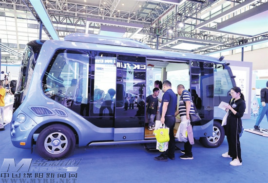 9月28日,在第十三屆中國(綿陽)科博會上,觀眾體驗無人駕駛汽車。