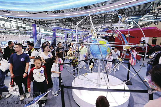 9月28日,在第十三屆中國(綿陽)科博會“南天門計劃”主題展區,觀眾沉浸式體驗科幻裝備的魅力。