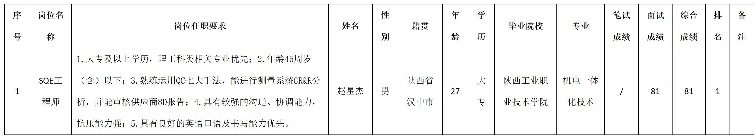 根據四川安和精密電子電器股份有限公司發布的招聘公告及招聘相關規定,經筆試、面試等程序,現將筆試(面試)成績予以公示。