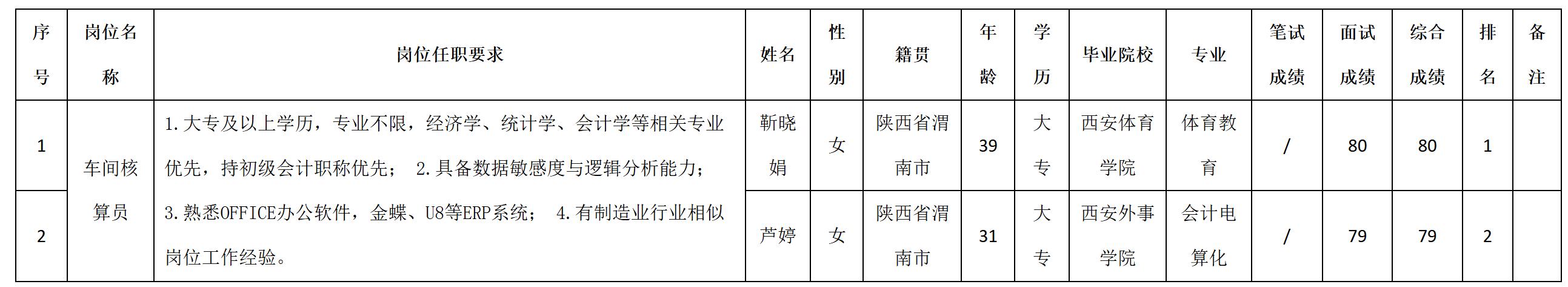 根據四川安和精密電子電器股份有限公司發(fā)布的招聘公告及招聘相關規(guī)定,經筆試、面試等程序,現將筆試(面試)成績予以公示。