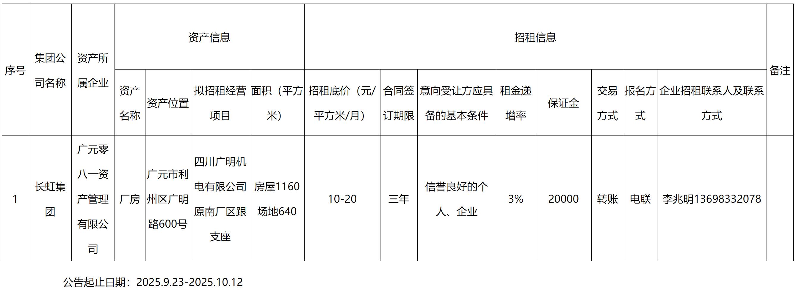 廣元零八一資產(chǎn)管理有限公司資產(chǎn)出租公告