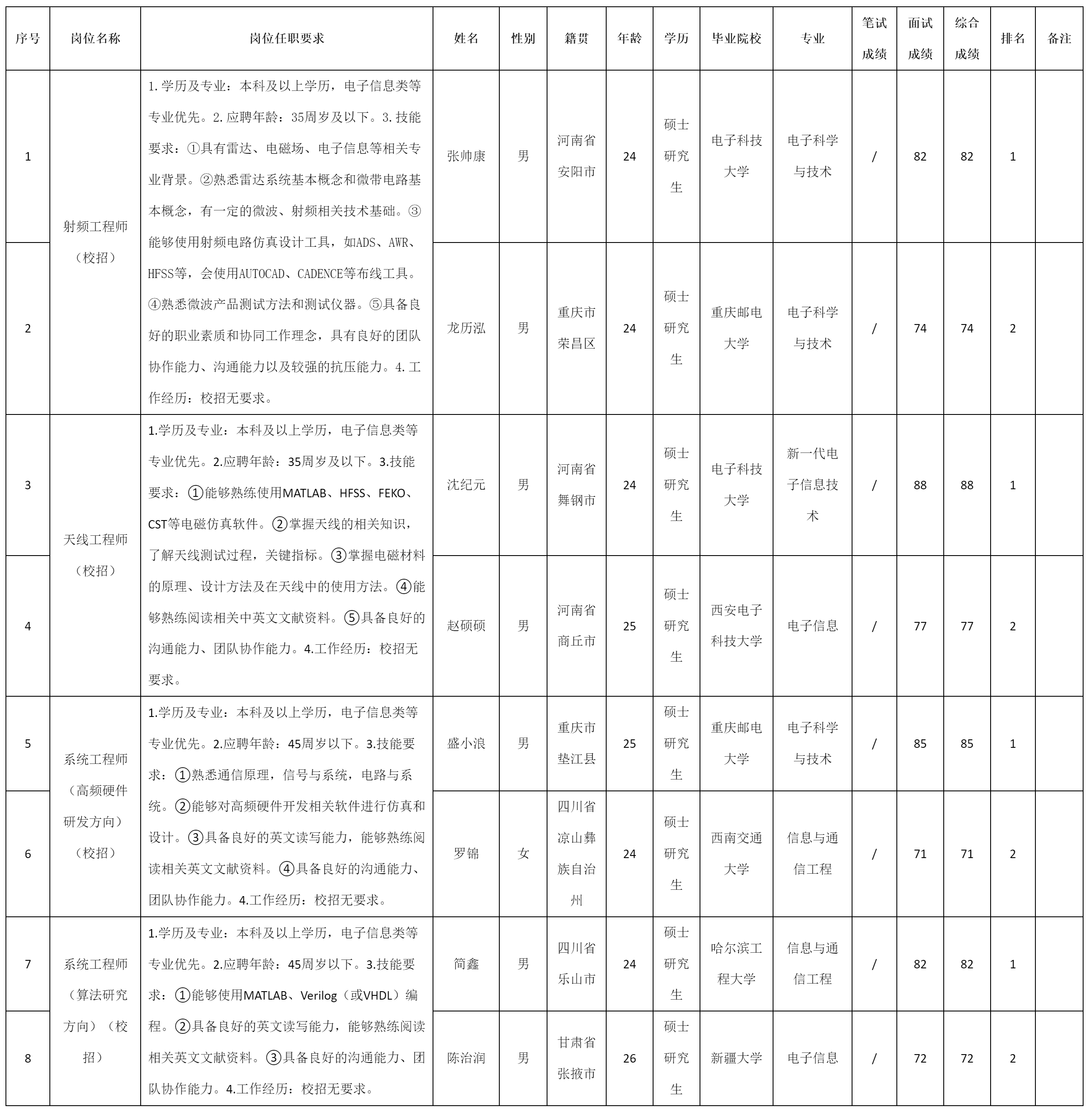 根據(jù)四川九洲電器集團有限責任公司發(fā)布的招聘公告及招聘相關規(guī)定,現(xiàn)將測試成績予以公示。