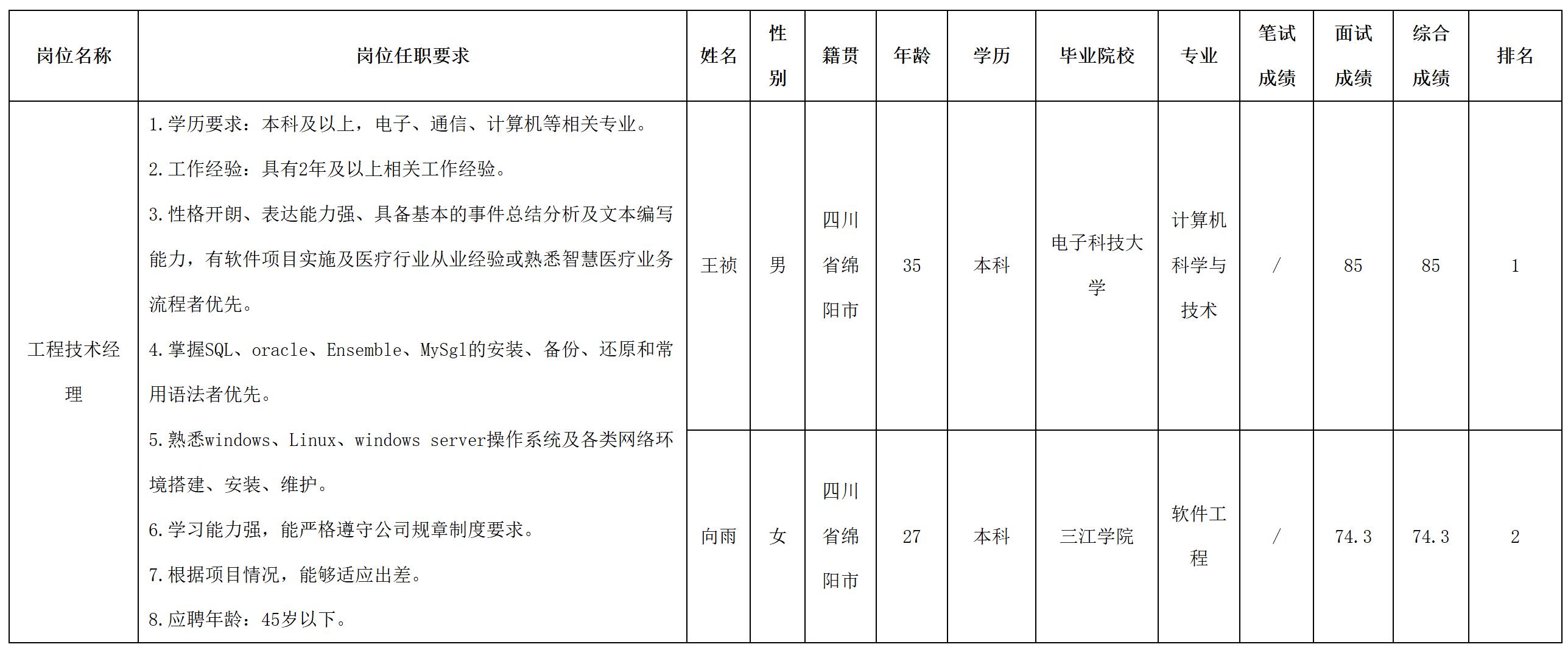 根據四川長虹智慧健康科技有限公司發布的招聘公告及招聘相關規定,經面試等程序,現將面試成績予以公示。