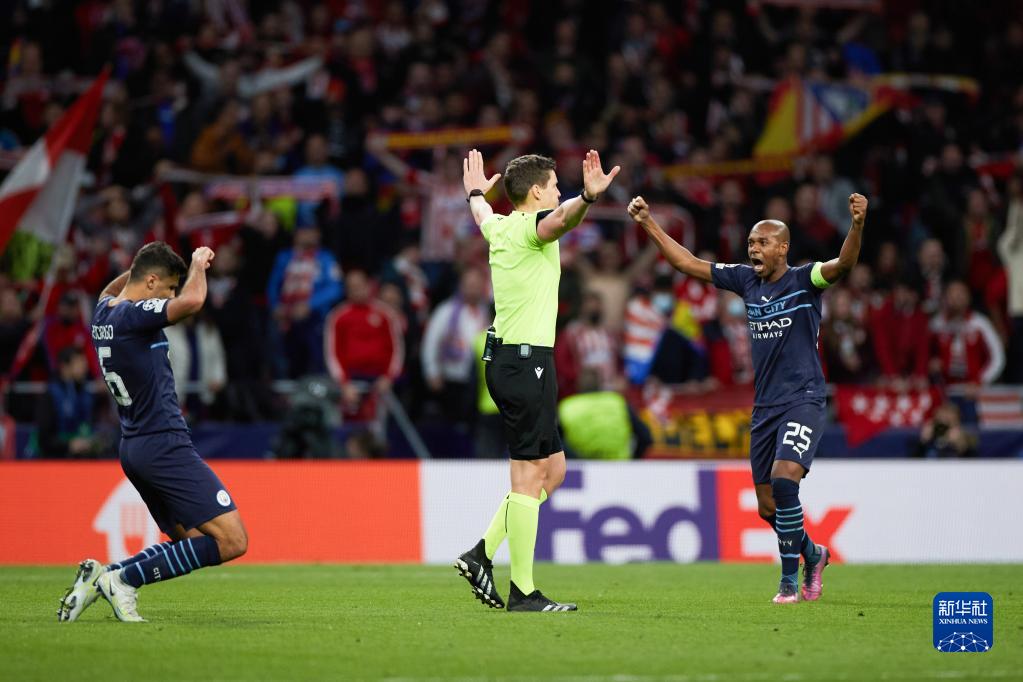 當日,在2021-2022賽季歐洲足球冠軍聯賽四分之一決賽次回合比賽中,英超曼徹斯特城隊客場以0比0戰平西甲馬德里競技隊,以兩回合1比0的總比分晉級四強。 [