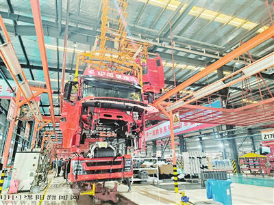 近日,記者走進中國重汽綿陽基地生產車間,入眼的是一派熱火朝天的景象:裝配線上,工人們熟練地安裝駕駛室、裝配輪胎,行吊車來回穿梭,機械臂精準焊接,一臺臺重型卡車在流水線上逐漸成型;車間里,機器聲隆隆,焊花四濺,工人們熟練地揮舞著手中的工具,干勁十足。[