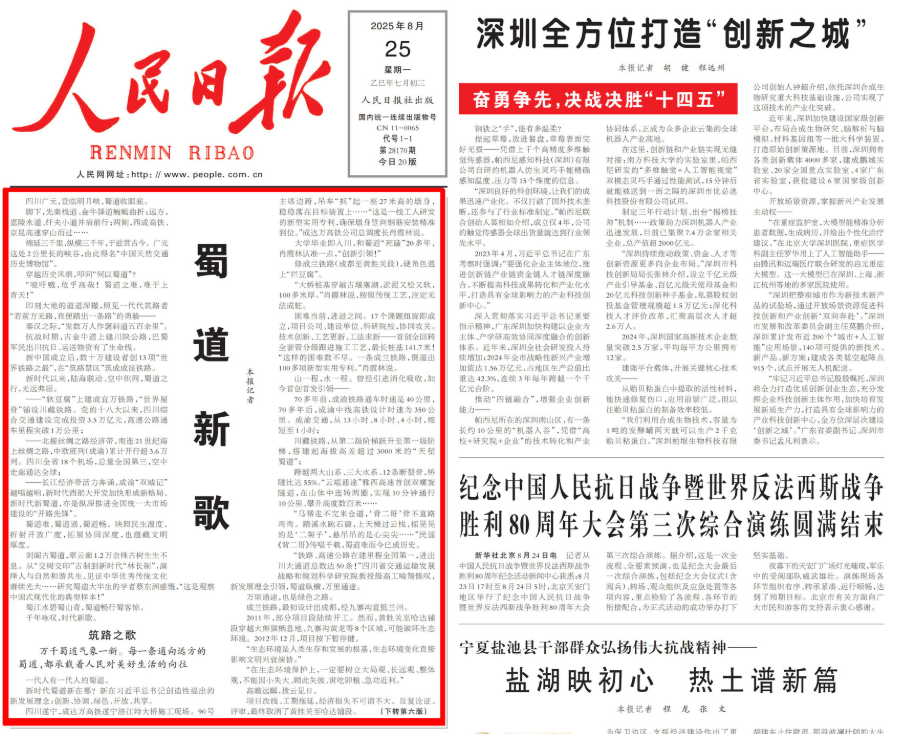 8月25日,《人民日報(bào)》頭版頭條刊發(fā)長篇稿件《蜀道新歌》,以跨越千年的蜀道為脈絡(luò),展開了一幅中國式現(xiàn)代化四川新篇章的壯闊畫卷。文章一經(jīng)發(fā)出,迅速刷屏出圈,其宏大的意象、厚重的歷史縱深與澎湃的時(shí)代氣息,引發(fā)廣泛共鳴。[