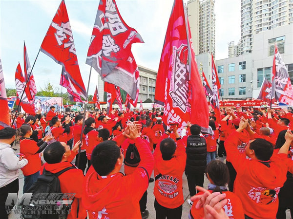11月1日19:35,“川超”聯(lián)賽綿陽九洲長虹隊與甘孜有機牦牛隊將在賽場上展開精彩的對決。賽前,在三臺縣體育場外,球迷們用無比的熱情暖場,道出兩地的情誼綿長。 [